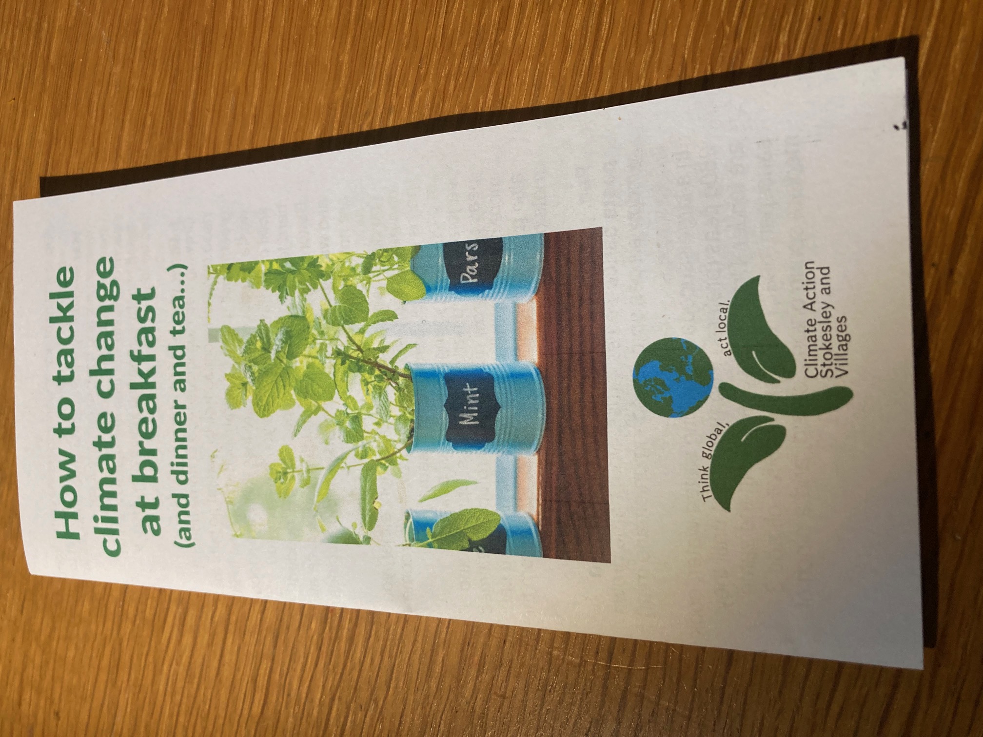 A leaflet on eating sustainably including recipes has been produced to give out at CASAV events. It’s already been given out to much interest at the Bilsdale Agricultural Show and further leaflets will follow.