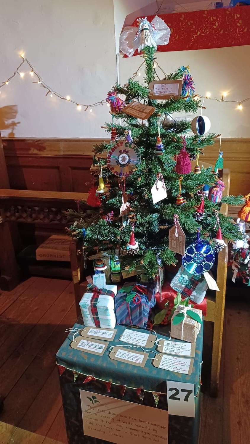 The Nature Group decorated a (25 year old!) tree with decorations made from upcycled waste to promote sustainability for the Stokesley Parish Church Christmas Tree Festival which ran throughout December until 5th January. At time of this email the results were not yet published but our tree was very much admired and prompted discussion on sustainability. In addition to the Peat Bog restoration tour on January 16th, further opportunities to learn more about our changing environment and how to fight biodiversity loss are planned.
