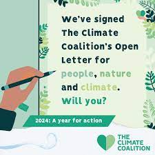 The Climate Coalition is the UK’s largest group of people dedicated to action on the climate and nature crises. Along with sister organisations Stop Climate Chaos Cymru and Stop Climate Chaos Scotland it is a gathering of over 130 organisations including the National Trust, Oxfam, RSPB and the Women’s Institute, with a combined supporter base of 20 million. As this is election year, the organisation reminds us of the need to show all politicians, political parties and candidates that we need urgent action to address the climate and nature crises