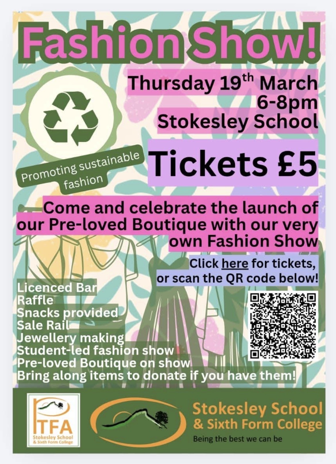 They need smart dresses, separates, trouser, jackets and suits as well as accessories so please give your wardrobes a spring clearout and donate towards this great sustainable cause. Clothing can be dropped off at school reception.