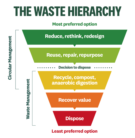 Initially we focused on waste management as a means of climate action e.g. by promoting local opportunities for recycling but have now expanded activities to move towards the more preferred options of the ‘waste hierarchy’ through circular management so it is time to rename the group!